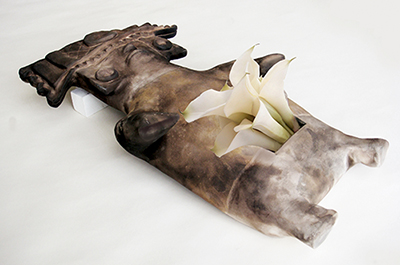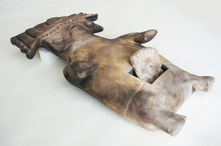 One place that made an indelible impression on me is located the outskirts Tlaxcala, Mexico. This locale has two Pre-Columbian sites situated almost on top of one another: Cacaxla, with its fabulous murals, complex architectural remains and small museum, and the nearby the site of Xochitecatl, consisting of four pyramids that are believed to have been used mainly for religious purposes. An on-site security guard learned I was a potter. He invited me to visit a small museum, normally not open to the public, at the foot of the round one (unusual in Pre-Columbian construction). It was filled with small ceramics and artifacts. Of the ceramics on display, the most interesting were 13 or 14 very small, flattened ceramic figures with removable figurative heads in the abdomen. The images of the tiny figures, with their even smaller removable figures in the belly of each, remained with me. I have recreated a series of sculptures to make tangible my memories of those tiny figures that allude to multiple layers of symbolism attached to the female figure, particularly as a receptacle.