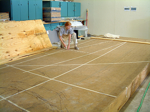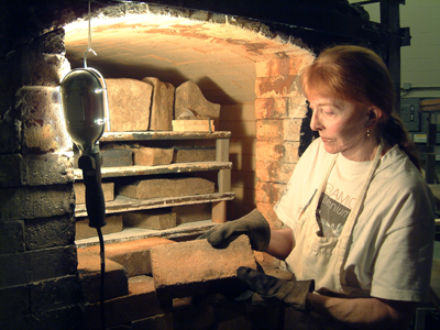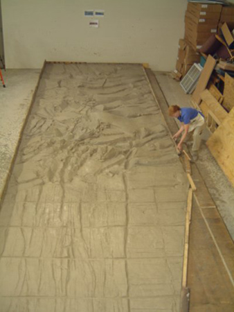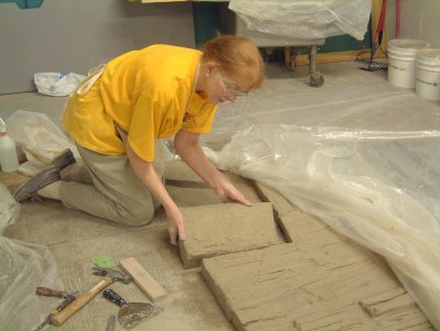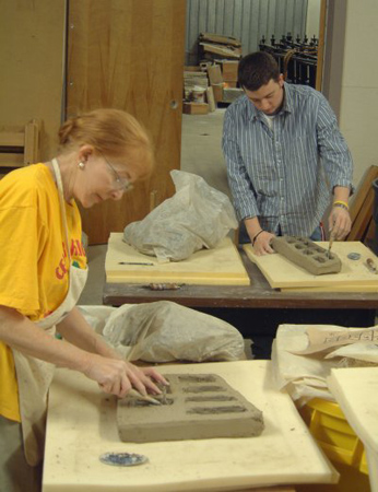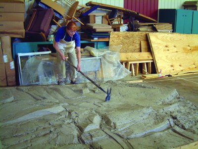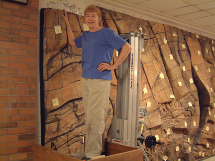 Work was begun in July 2005 with over 100 slip tests run to determine colors to use. In August the 30’wood easel was constructed. From September through December over 2 1/2 tons of clay were sculpted by hand and with garden tools. In January 2006 the process of cutting the sculpted clay into irregular pieces and hollowing out the back of each was begun. This was completed by August 2006. After the segments were hollowed out they were re-fitted into place to compensate for distortions occurring during handling. This realignment of all the parts was finished during December 2006. During the spring of 2007 the mural was air-dried, bisque fired, then high-fired in a C/10 reducing atmosphere. After installation in Anderson during the summer and fall of 2007, it was officially unveiled October 20, 2007. The project was funded in part by a faculty research grant. In addition, others including former students, student and community volunteers and friends contributed time, money and product to enable me to make my vision a reality.