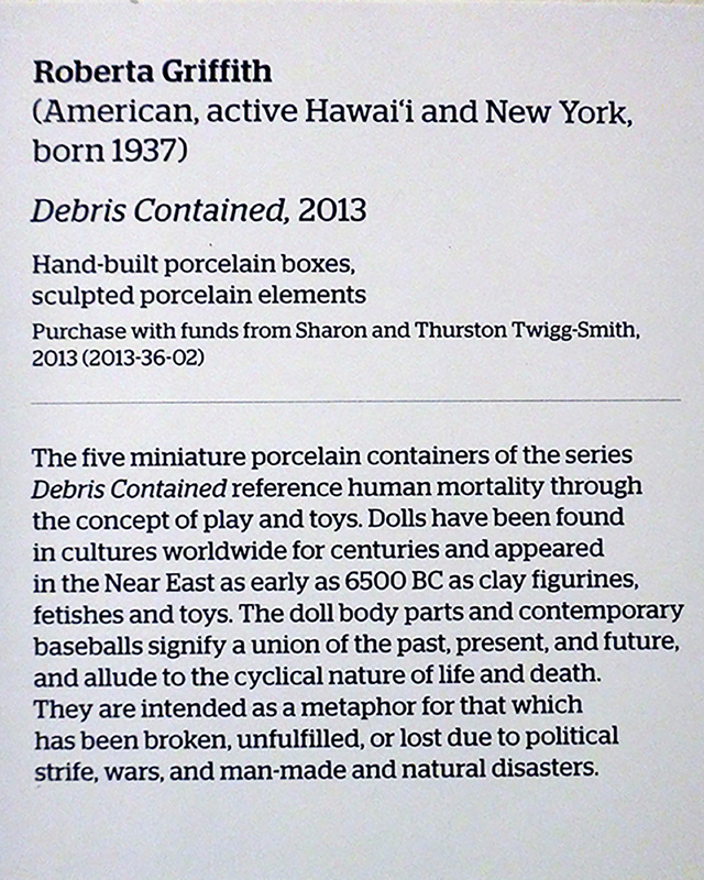 The Honolulu Museum of Art presents "21st Century Women" June 8-December 15, 2019. Included in the exhibition of artworks by 27 women from the collection from 2000-2018 is, "Debris Contained" by Roberta Griffith