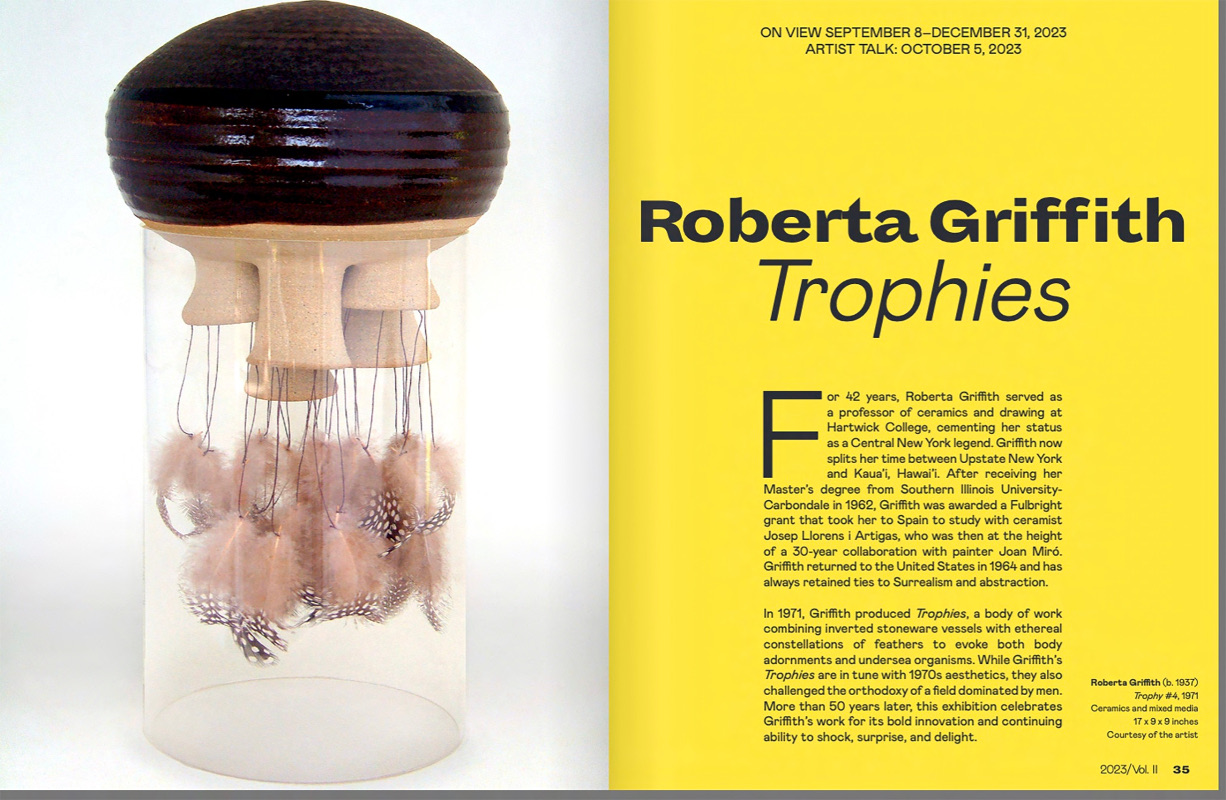 "Roberta Griffith: Trophies". Everson Museum of Art Syracuse, NY. 16 September-31 December : Trophies (clay, feathers, Plexiglas).